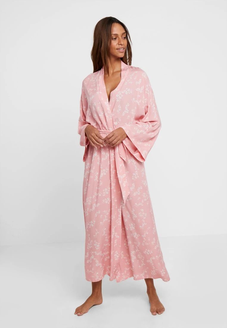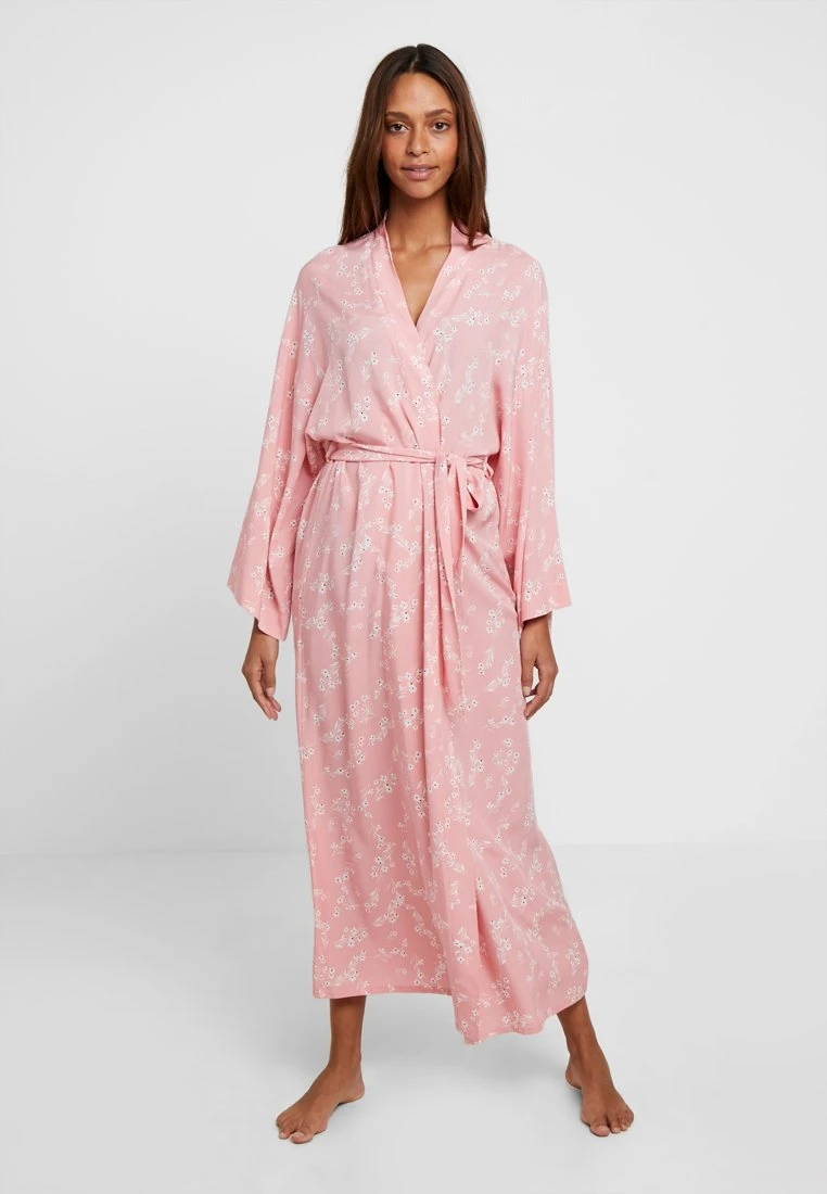 - Detalles: Forma de kimono, solapa, cinturón, largo